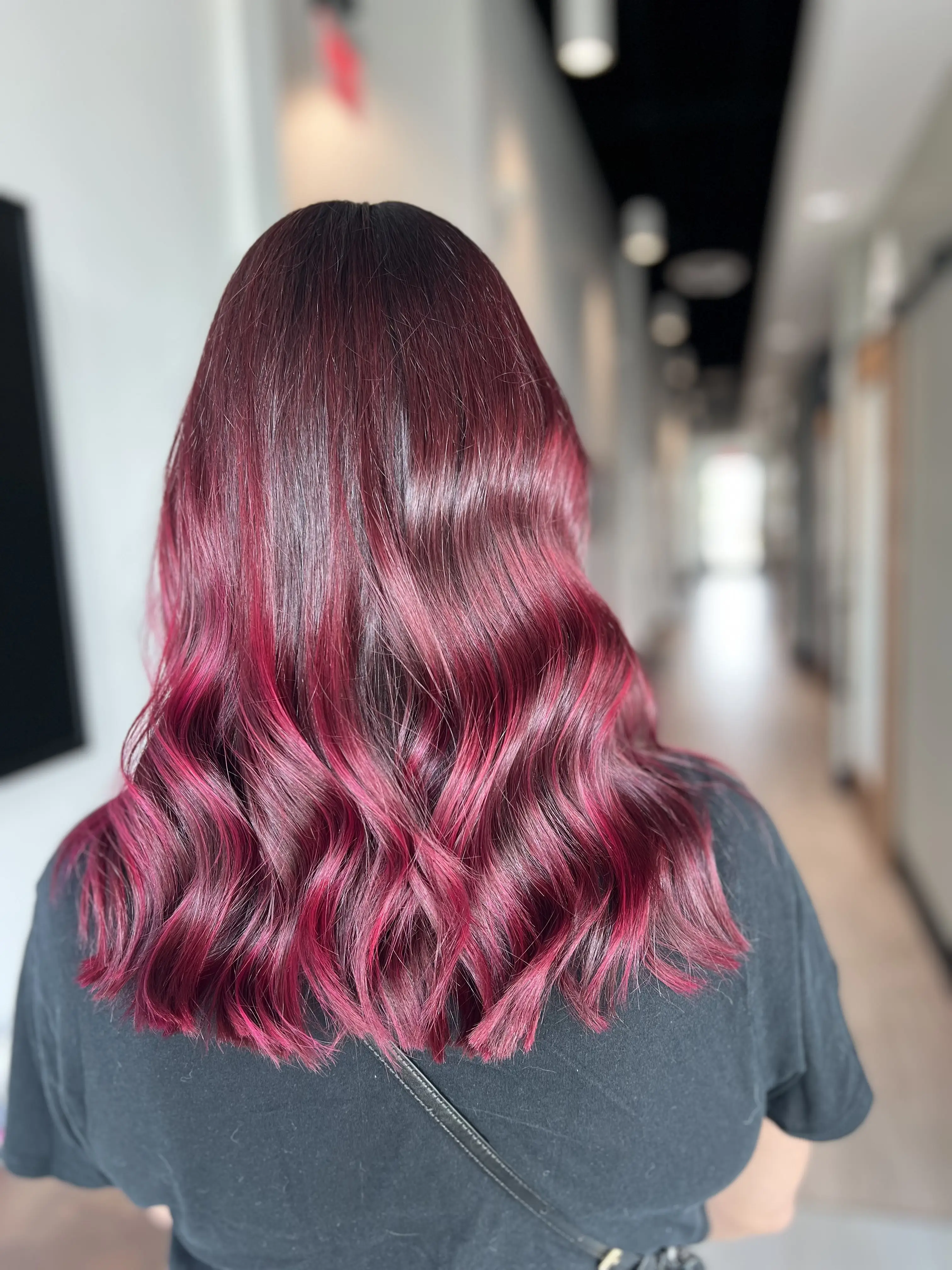 This service does NOT include any lightening. An overlay of vivid tones to pre-lightened hair or just to refresh something you have.
