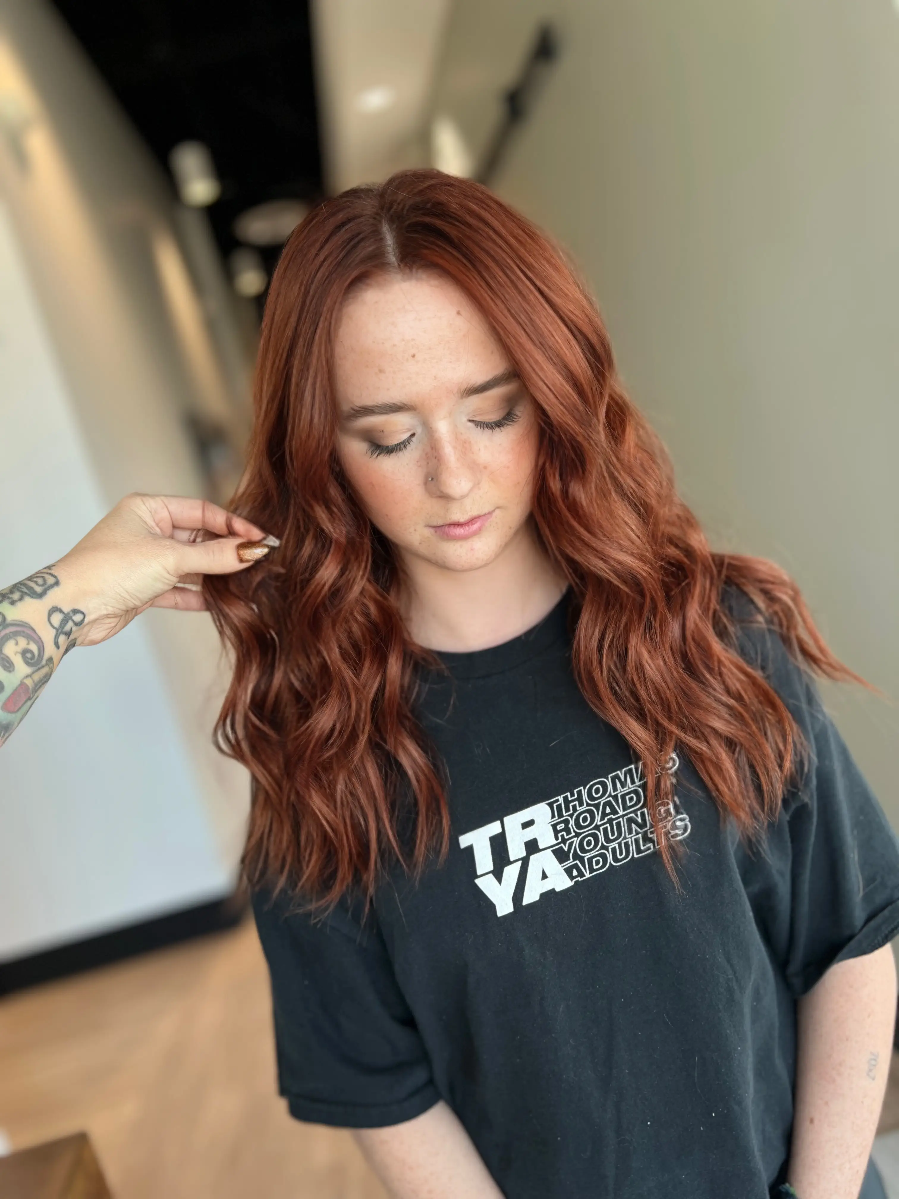 This service includes Permanent Color at the roots, all the way to the tips. This can also include a Permanent root color and a glaze through the ends.