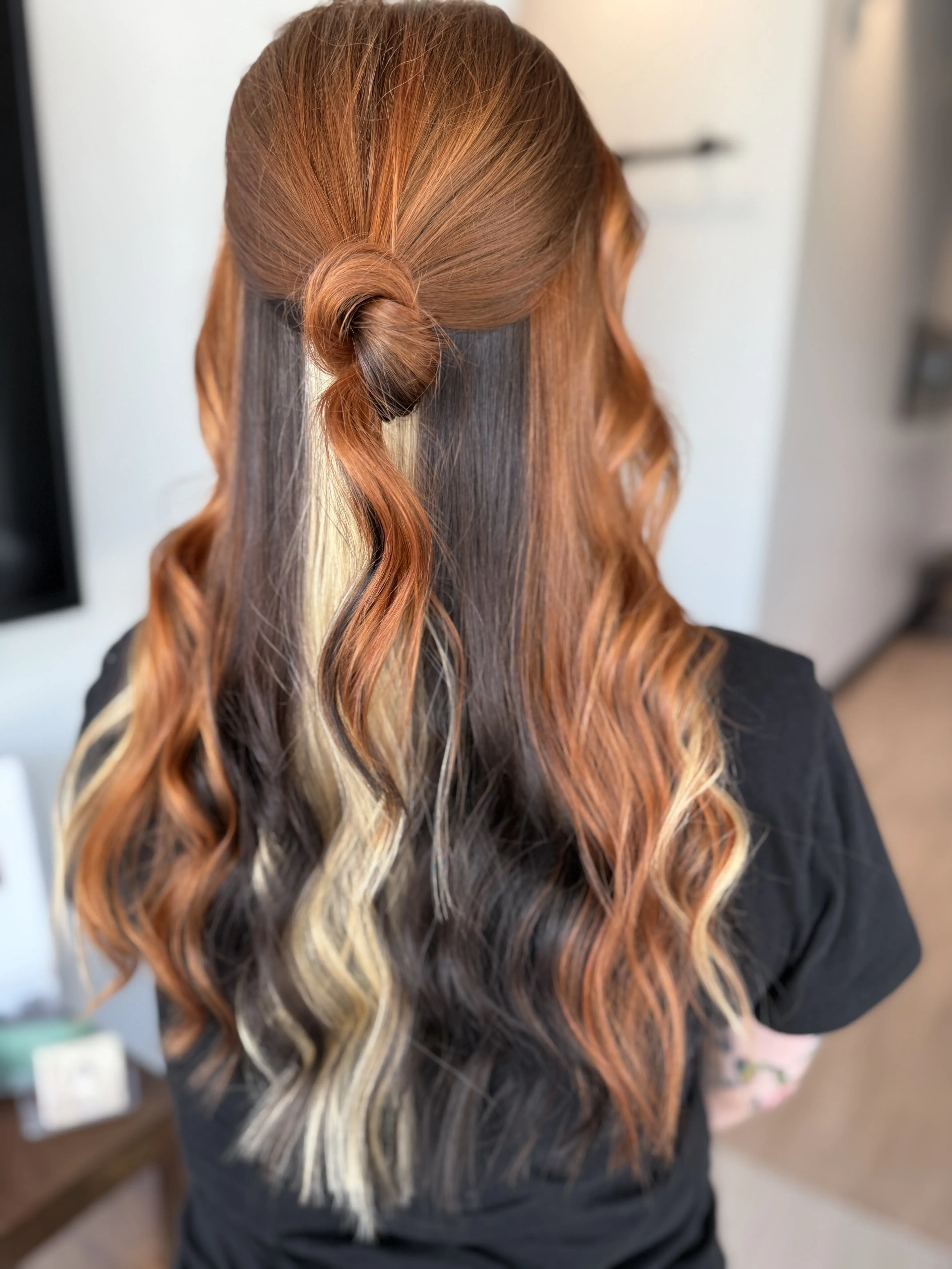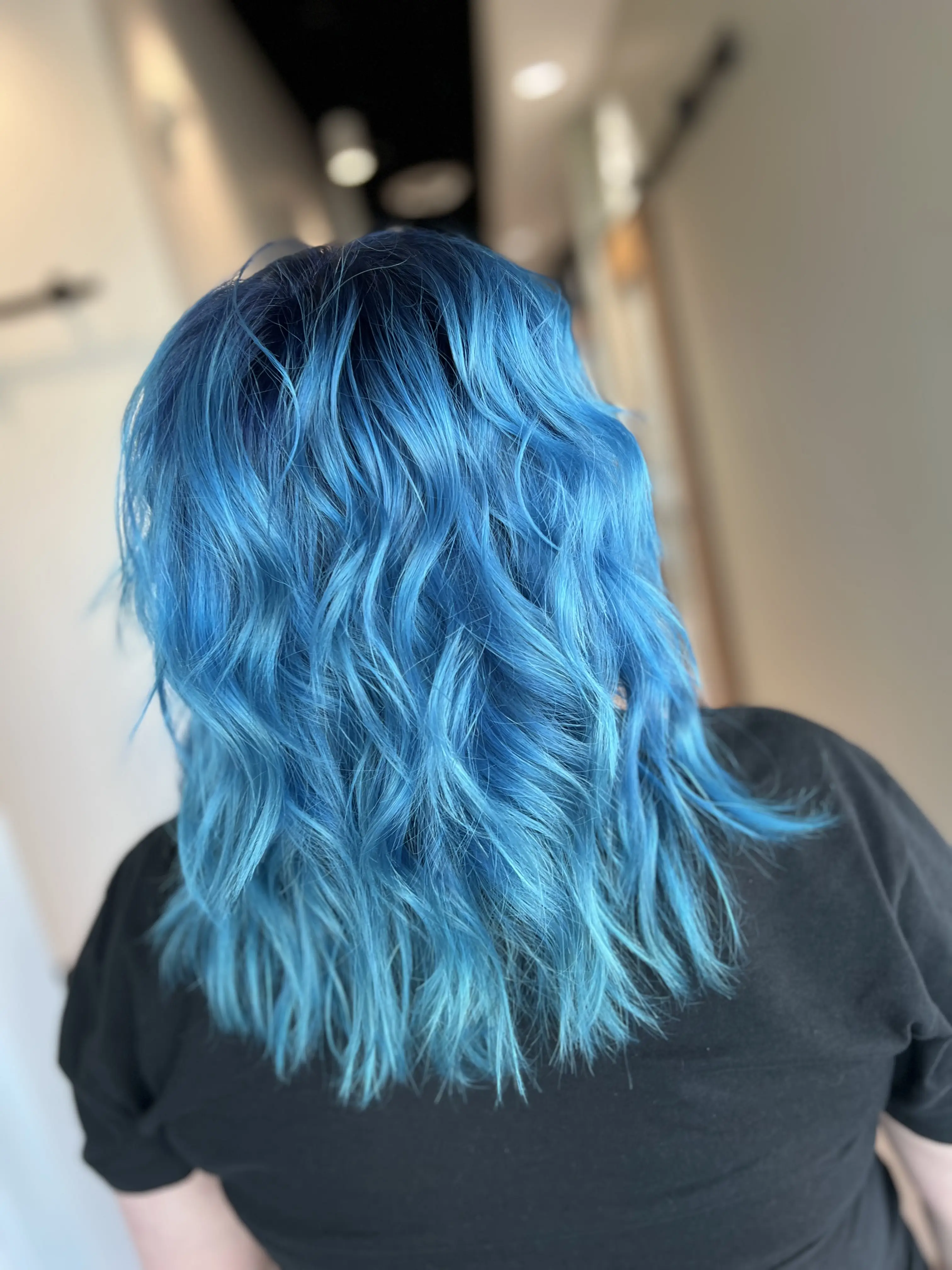This service is for clients looks to completely transform their hair into a work of ART! This usually includes a full head of lifting, with an overlay of a vivid tone. Multiple colors/Patterns can result in extra charges.